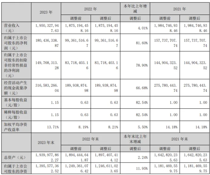 3月30日,燕塘乳業(yè)(002732)近日發(fā)布2023年年度報(bào)告,報(bào)告期內(nèi)公司實(shí)現(xiàn)營業(yè)收入1,950,327,947.63元,同比增長4.01%;歸屬于上市公司股東的凈利潤180,436,338.87元,同比增長81.60%。